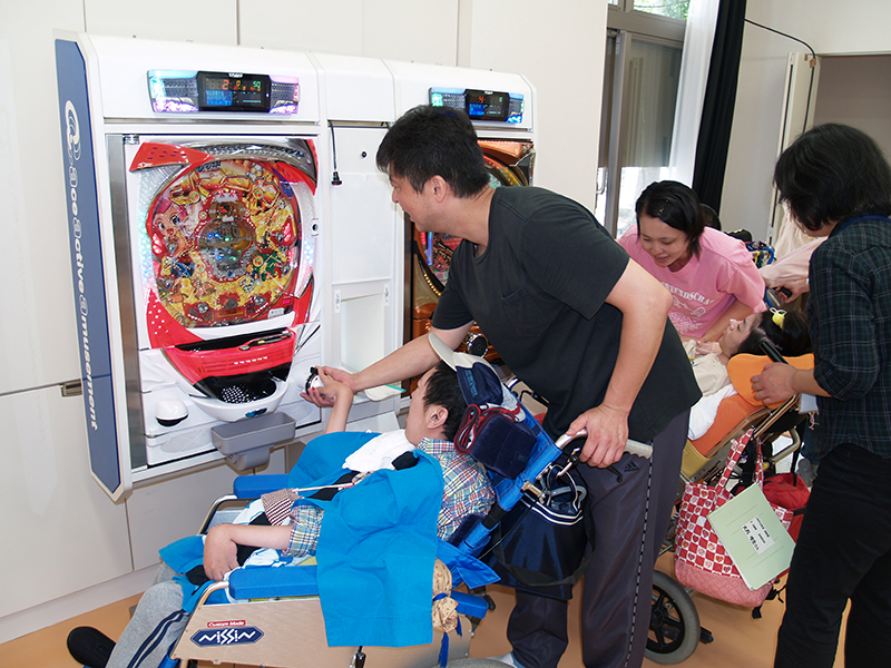 お祭り後、パチンコ台はレクリエーション活動やスタッフの自由時間などに使われる予定で、センターの指導科では障害者らの手を使う訓練としての活用にも期待しています。